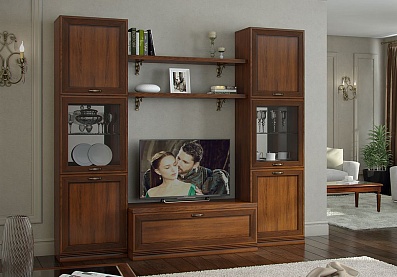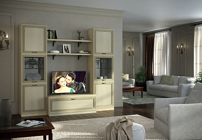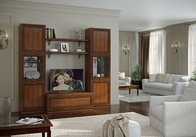 Классические стенки в гостиную создают гармоничную и изысканную атмосферу, добавляют элегантности, подчеркивают хороший вкус хозяев. Современная стенка в классическом стиле для гостиной отличается вместительностью и функциональностью. Внутри без труда помещаются габаритные вещи. В стеклянных шкафах отлично смотрятся предметы декора, красивая посуда.