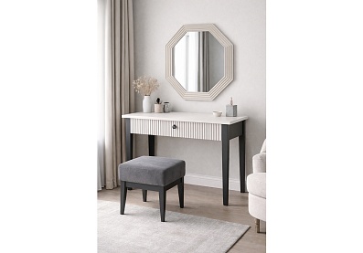 • Фасады ящиков: МДФ с декоративной фрезеровкой в виде вертикальных полос и окутаны плёнкой ПВХ;