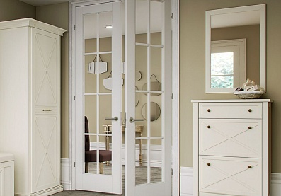 • Шкафы украшены изящными фахверками. Эти декоративные элементы отсылают к Старой Европе и создают дополнительные неброские акценты в интерьере;