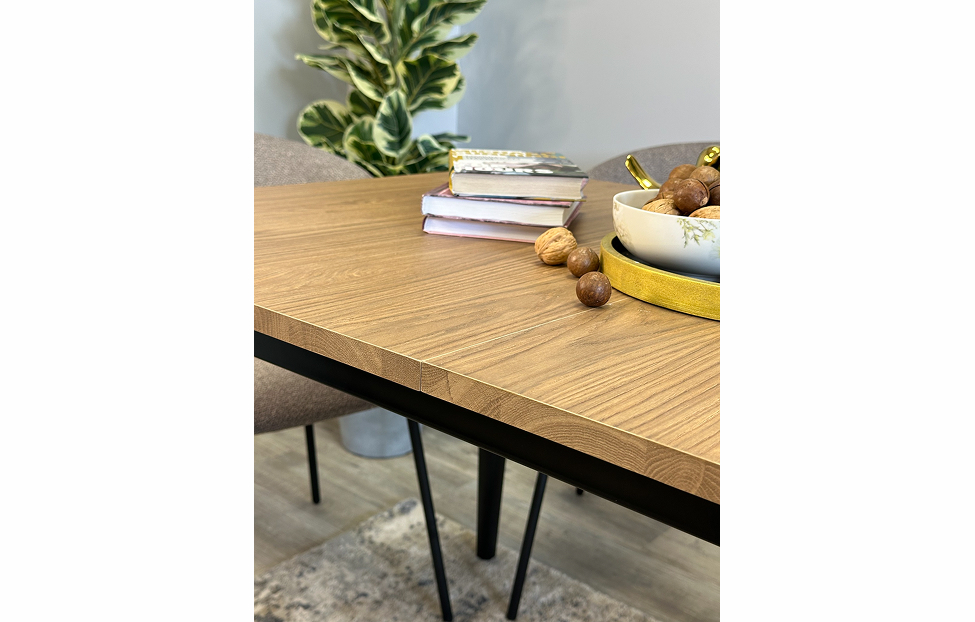 В столе используются уникальные дизайнерские опоры из металла. Тонкие, очень прочные, они дают достаточную ширину для того, чтобы поставить 2 больших стула по широкой стороне стола, и обеспечивают столу идеальную устойчивость