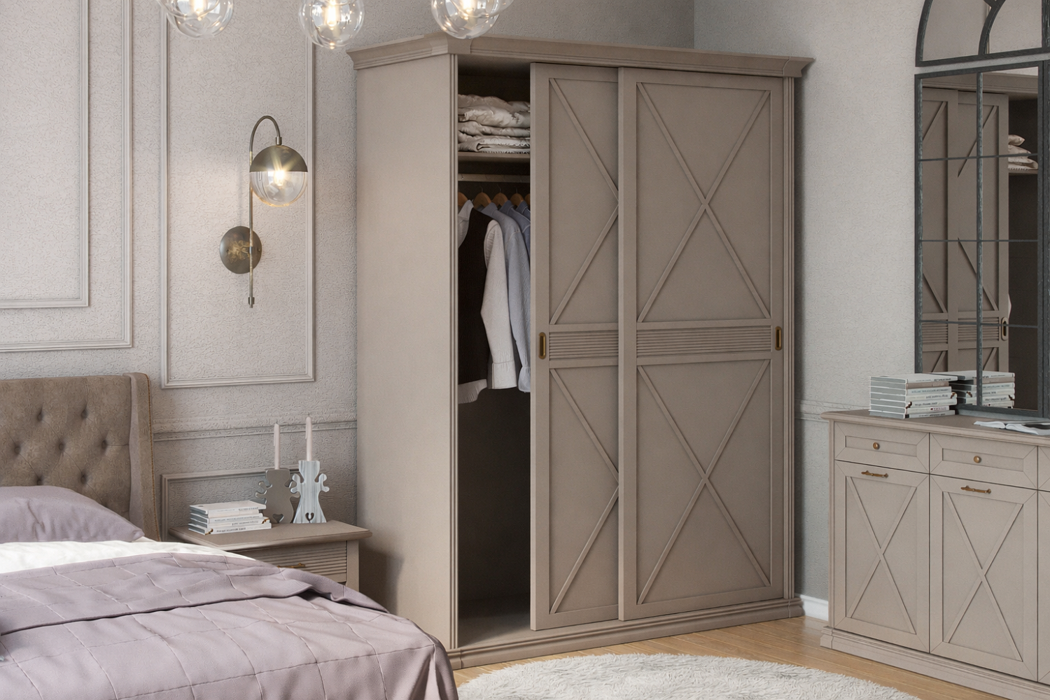 • Шкаф с раздвижными дверями на регулируемых опорах с двумя отделениями;